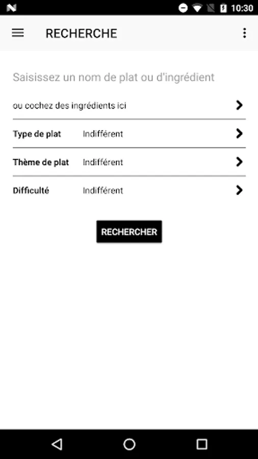 ● Search for recipes by keywords, ingredients, types of dish, themes and difficulties.