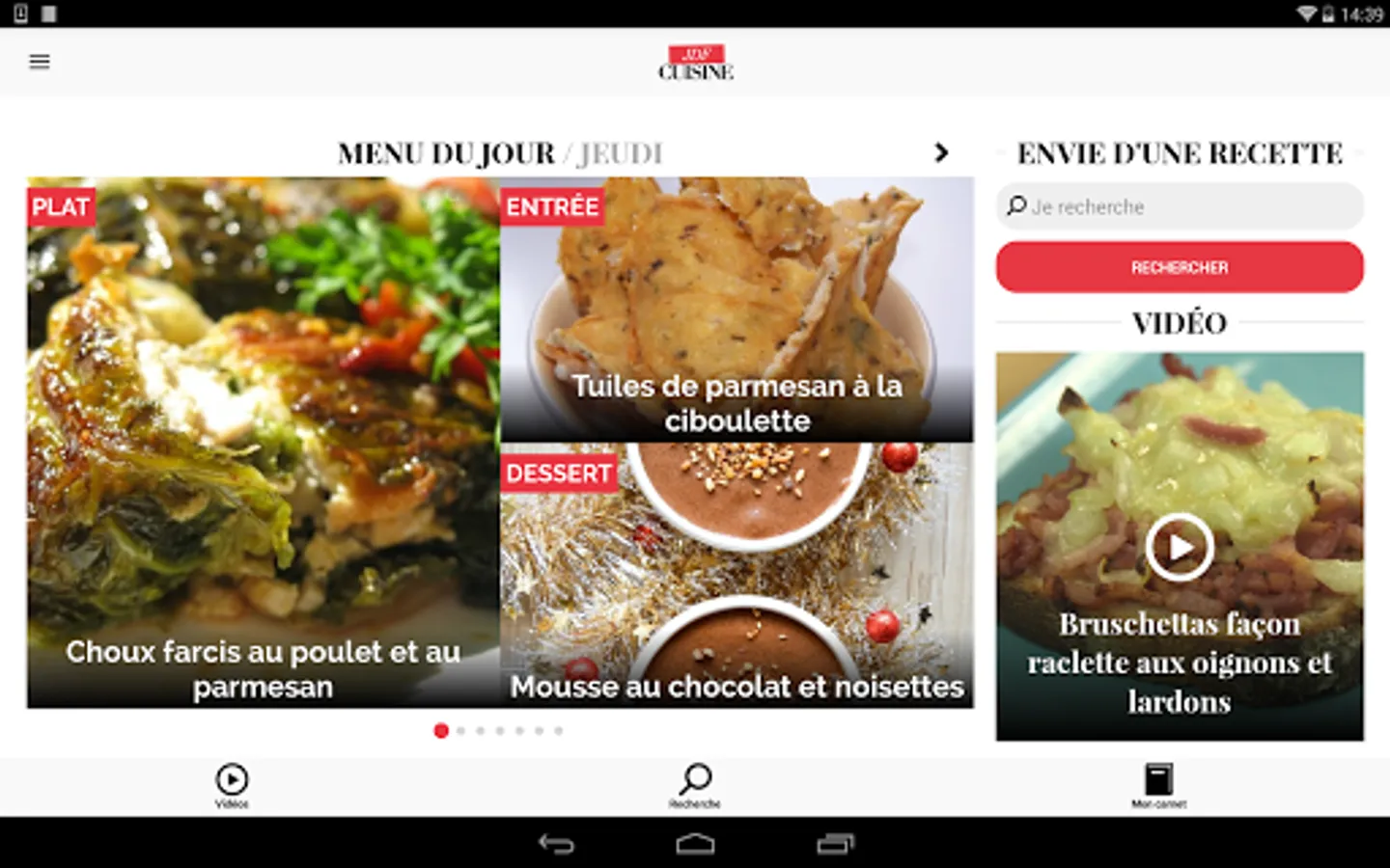 The Cuisine application offers cuisine from around the world and our regions with great classics but also original recipes.