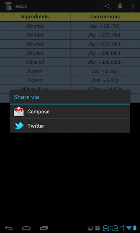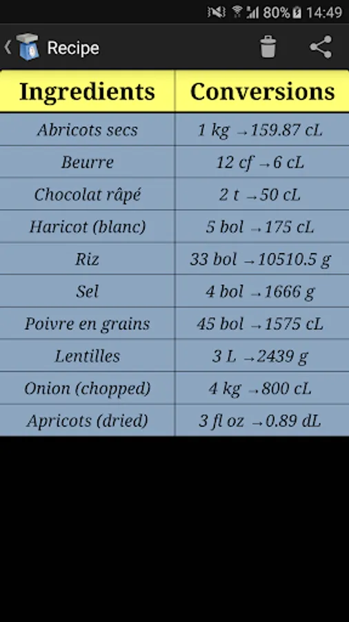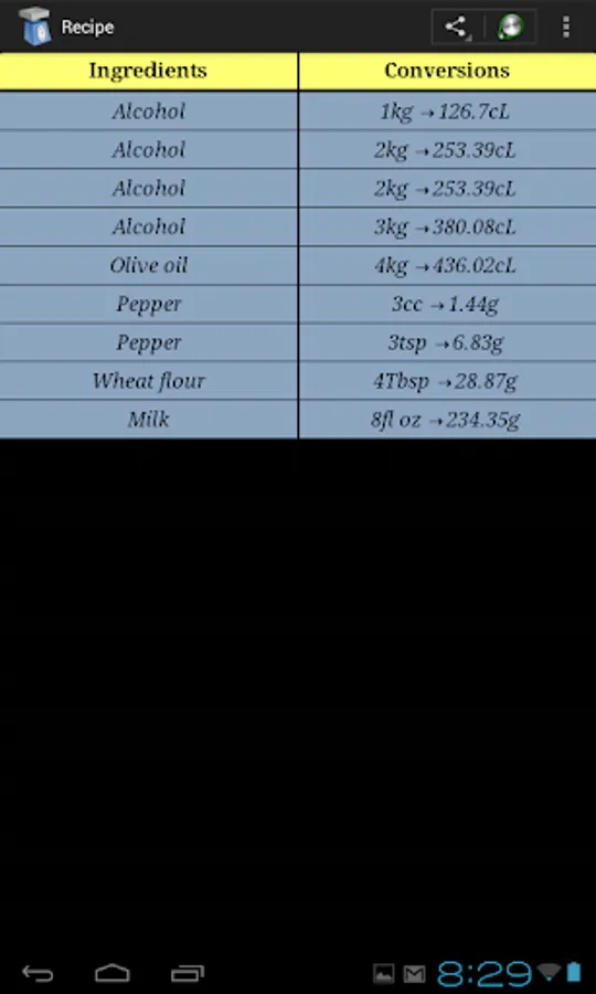 Kitchen converter helps you to convert many cooking ingredients in units of volume and weight.
