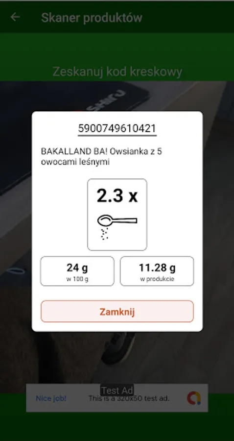 After scanning the product, you will get ready information on how many teaspoons of sugar the product contains