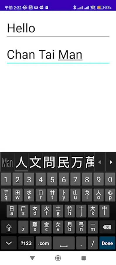 Mixed Chinese keyboard Plus (混合中文鍵盤+) is a soft keyboard implementation for the Android Mobile. It provides an IME for typing traditional and simplified Chinese characters on Android devices, by means of the Hong Kong Government (HKG) Cantonese Romanisation (香港政府粵語拼音), Cangjie (倉頡), Quick (速成) and English-Chinese (EC) Dictionary look up.