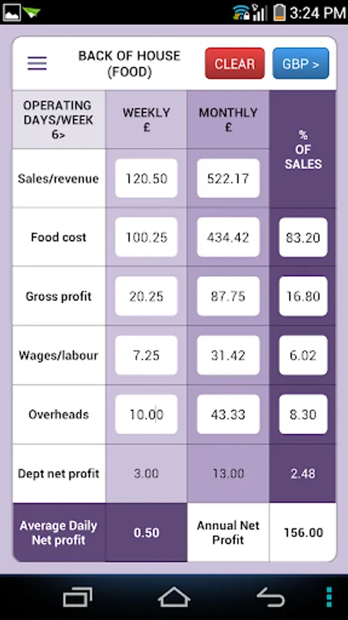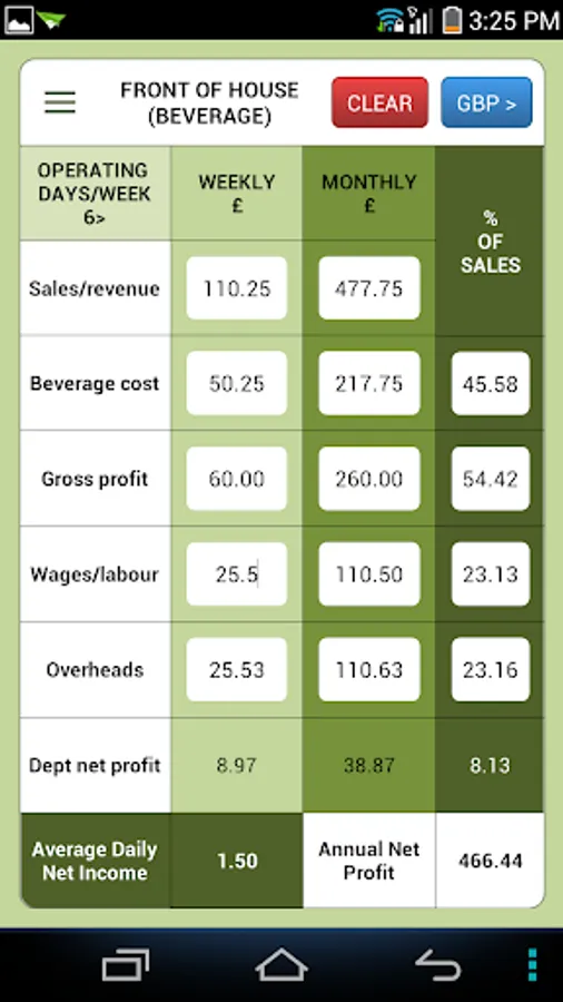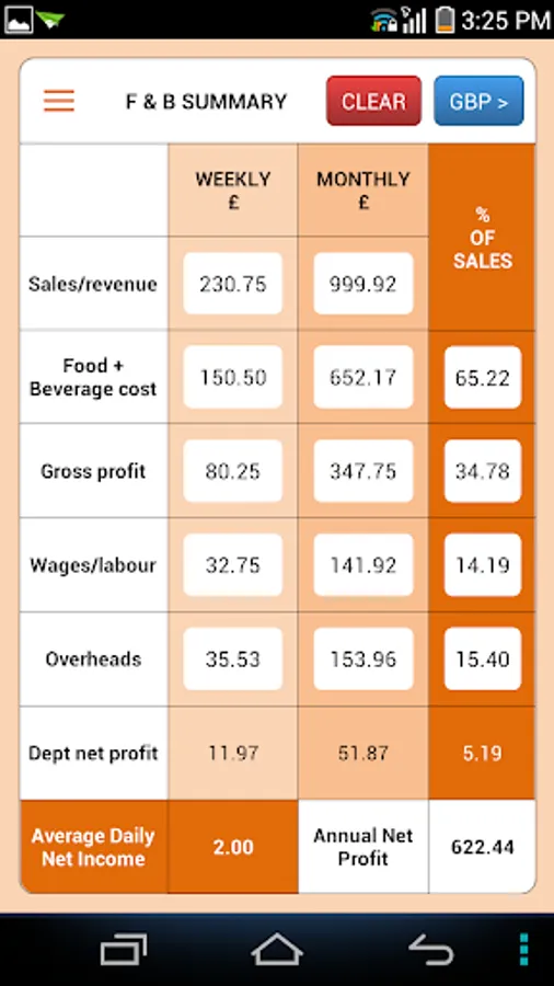 Finally, once all the data has been inputted into screens 1 and 2, a user can have an instant, accessible and user-friendly financial overview of a proposed or current catering business. Furthermore, this can help the user to become more aware of the financial challenges, financial risks and financial budgets that are critical to the on-going success of a catering business.