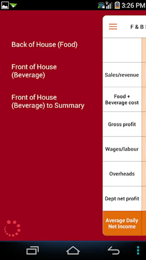 8. Once the user has inputted numbers into the Back of House (screen 1), the user can