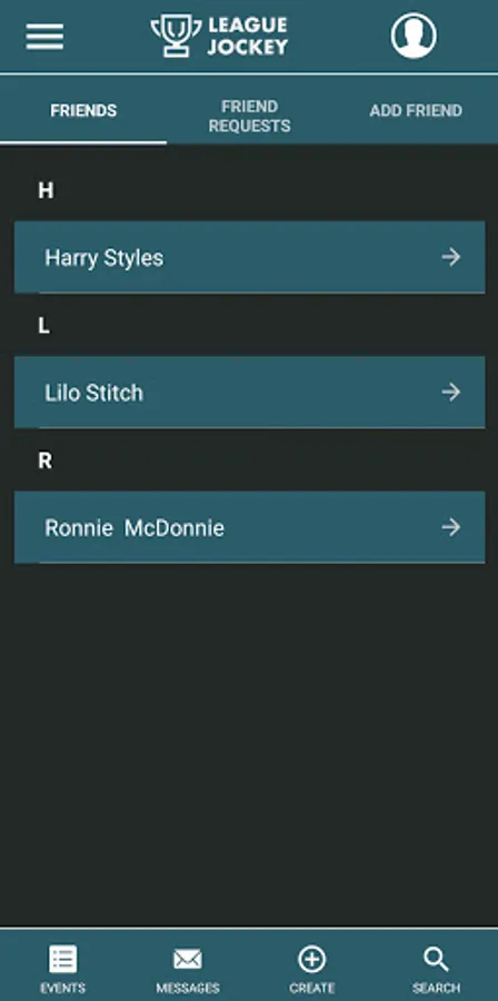 Let friends signup for your event or create unmanaged teams for friends who do not have the League Jockey app.