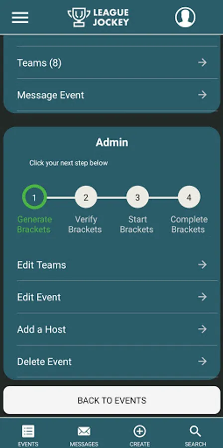 Generate your pool play, brackets, or league schedule. Then publish it to send a notification to all members of the event to view.