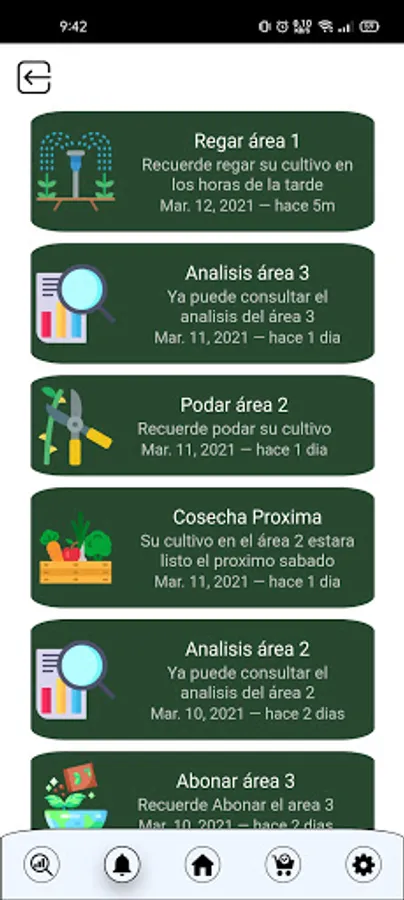 The solution proposes the creation of a crop monitoring system through AI and IoT, in search of reducing the times of care of the crops and the risks that they may suffer during their germination, growth and cultivation stage. The proposed system will communicate with the user through a mobile application where they will have access to different elements, statistics and analysis resulting from the monitoring, where the actions to be implemented depending on the status of their cultivation will be indicated. Within these actions we can find: pruning, irrigation, fertilization, fumigation, harvesting, etc. As well as you will be able to visualize the state of your crop and how environmental factors are acting on it: daily light, humidity levels, pH, among others. In the development of the proposal, timely decision-making and communication to the user during each stage of the cultivation is recognized of great importance, since this will be the only way to control and succeed in the objective of having an urban and organic garden.