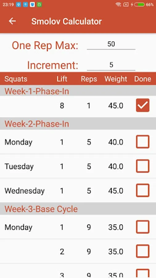 the 3-week Smolov Jr. and 13-week Full Smolov Squat protocols. The app