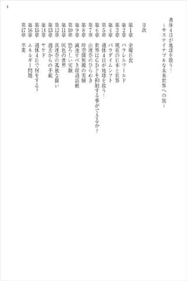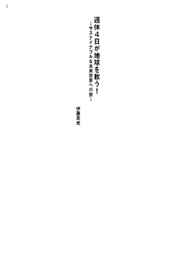 What is our planet like in 2042? The book tackles the world economy and global environment issues we are currently facing for a fulfilling and sustainable future. A 4-day weekend will save our planet - an intriguing quest for the world to come!