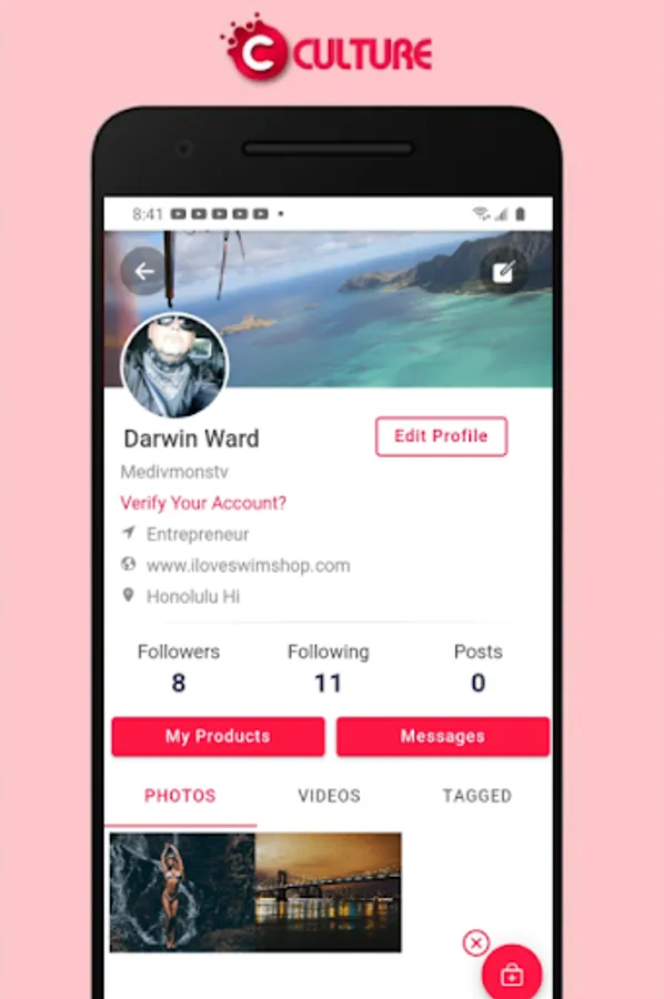 Culture App allows users to edit and upload photos and short videos through a mobile app. Users can add a caption to each of their posts. Each post by a user appears on their followers' Culture and can also be viewed by the public when tagged using hashtags or geotags. Users also have the option of making their profile private so that only their followers can view their posts.