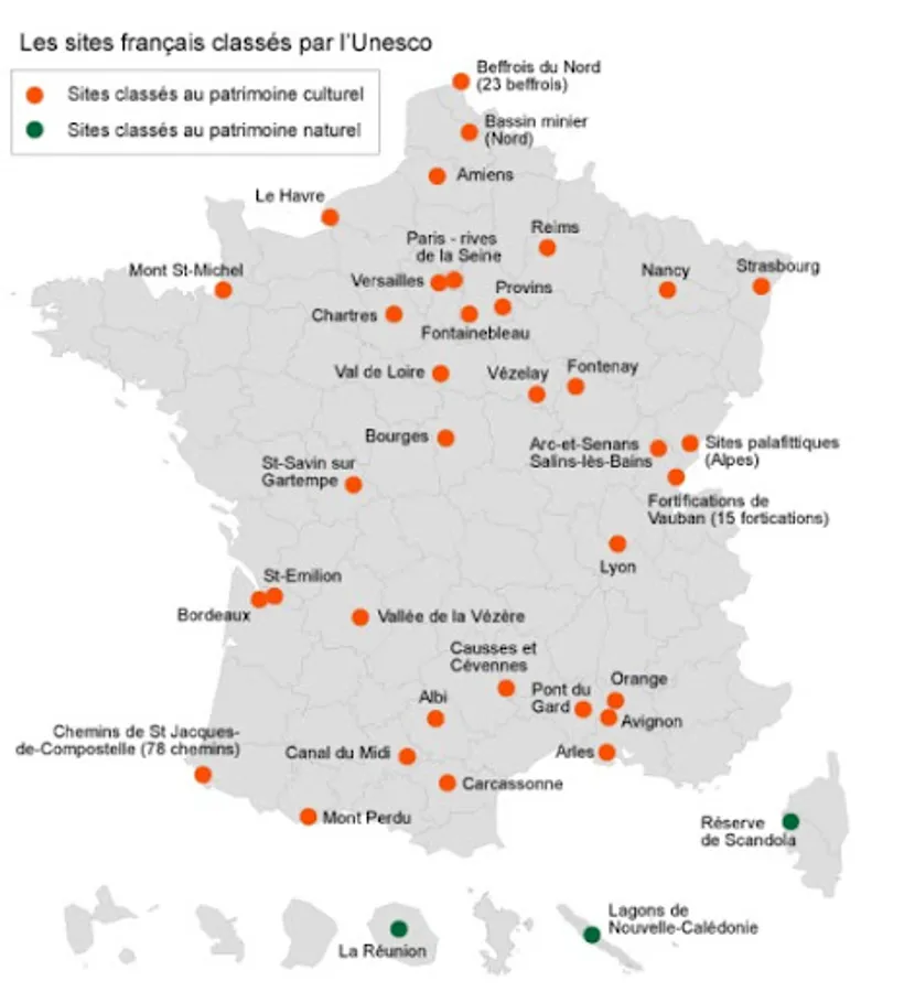 В списке Всеми́рного насле́дия во Францу́зской Респу́блике значится 43 наименования (на 2017 год), это составляет 3,7 % от общего числа (1154 на 2021 год).