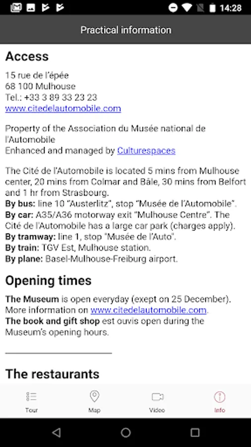- practical information in order to prepare your visit