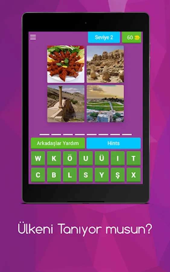 In the game, you are asked to guess which city is in Turkey from among the 4 pictures given to you. Pictures can be images of important structures, landscapes or special characteristics of cities. As you make correct predictions, the game level will increase and you will encounter more challenging cities.