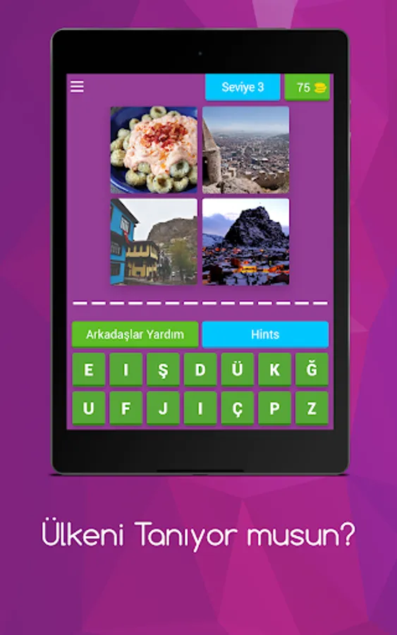 Guess the cities of Turkey with 4 pictures is a game that makes exploring the cities of Turkey easy and fun. The game helps you learn about the cities in Turkey while at the same time it allows you to test your intelligence.