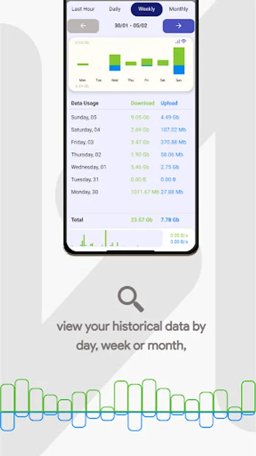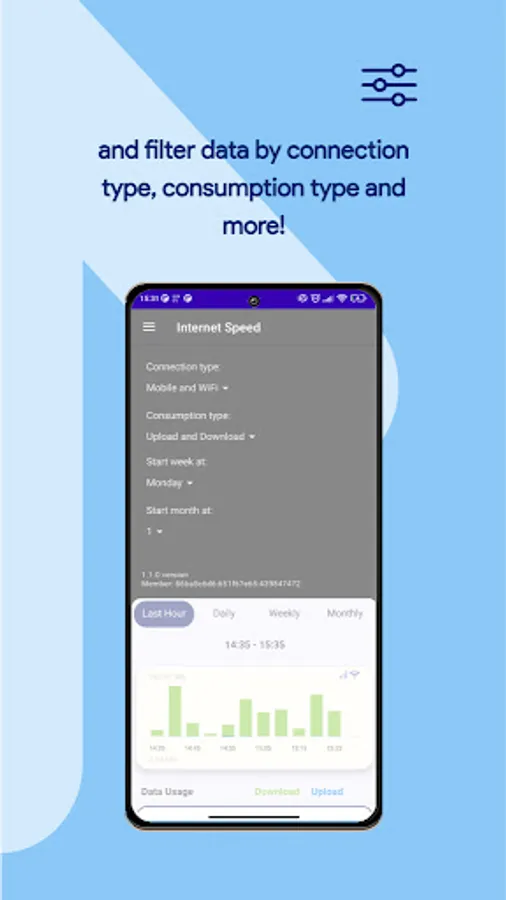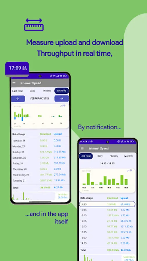 Internet Speed is the best option to monitor your internet data usage. You will be able to see your throughput real time in the status bar of your device, and you will be able to see your data consumption inside the app.