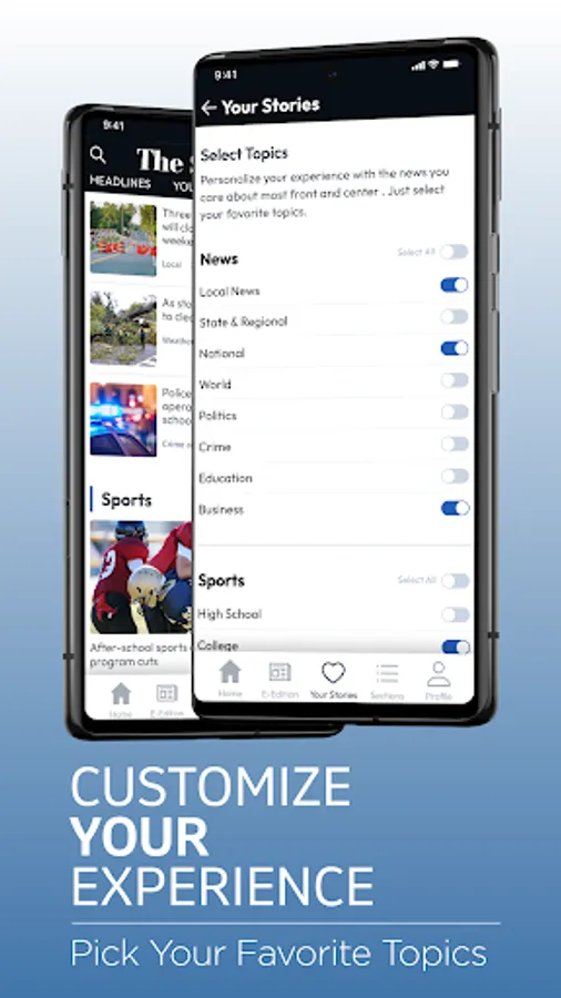 * Your Stories – personalize your experience by selecting the local news topics that matter most to you