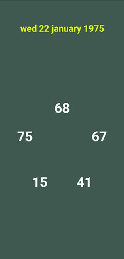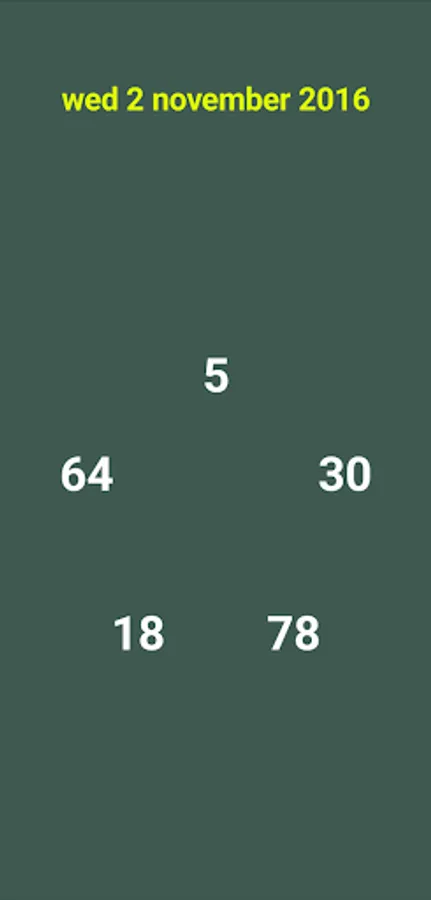 This app generates five numbers from a date: the current date, a birthday, an event, etc. (touch and hold date to change); you can generate your own numbers to play lottery.