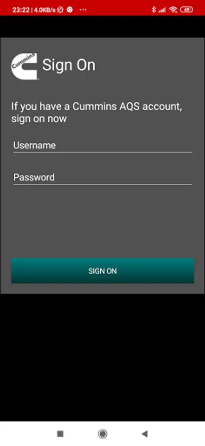 You will need an Internet connection and Cummins WWID credentials to sign onto this application. Check your device's Settings to make sure you have an Internet connection.