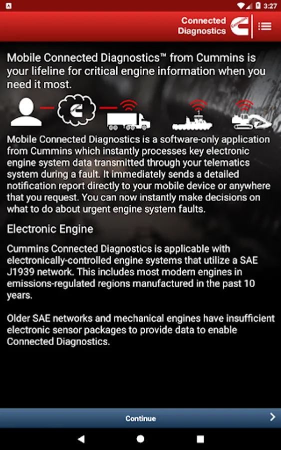 Mobile Connected Diagnostics transforms Cummins engine system fault data into actionable information to enable instant decisions for maximum equipment productivity.