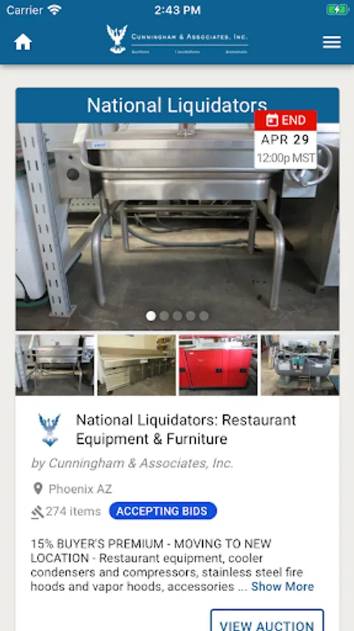 Welcome to the Cunningham Auctions mobile bidding app! This dynamic app allows you to (1) stay informed about our upcoming auctions; (2) view properties that interest you; (3) get notifications when you’ve been outbid; (4) bid no matter where you are located (or set and forget your maximum bid to let our platform automatically bid the lowest possible winning bid for you). This is the go-to-source for up-to-the-minute information on all of our auctions and listings.