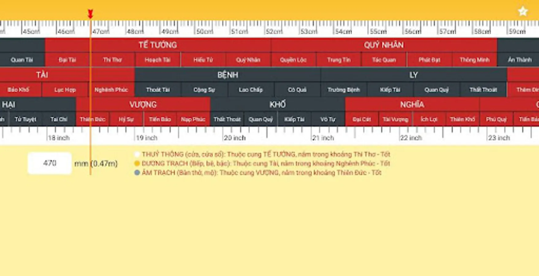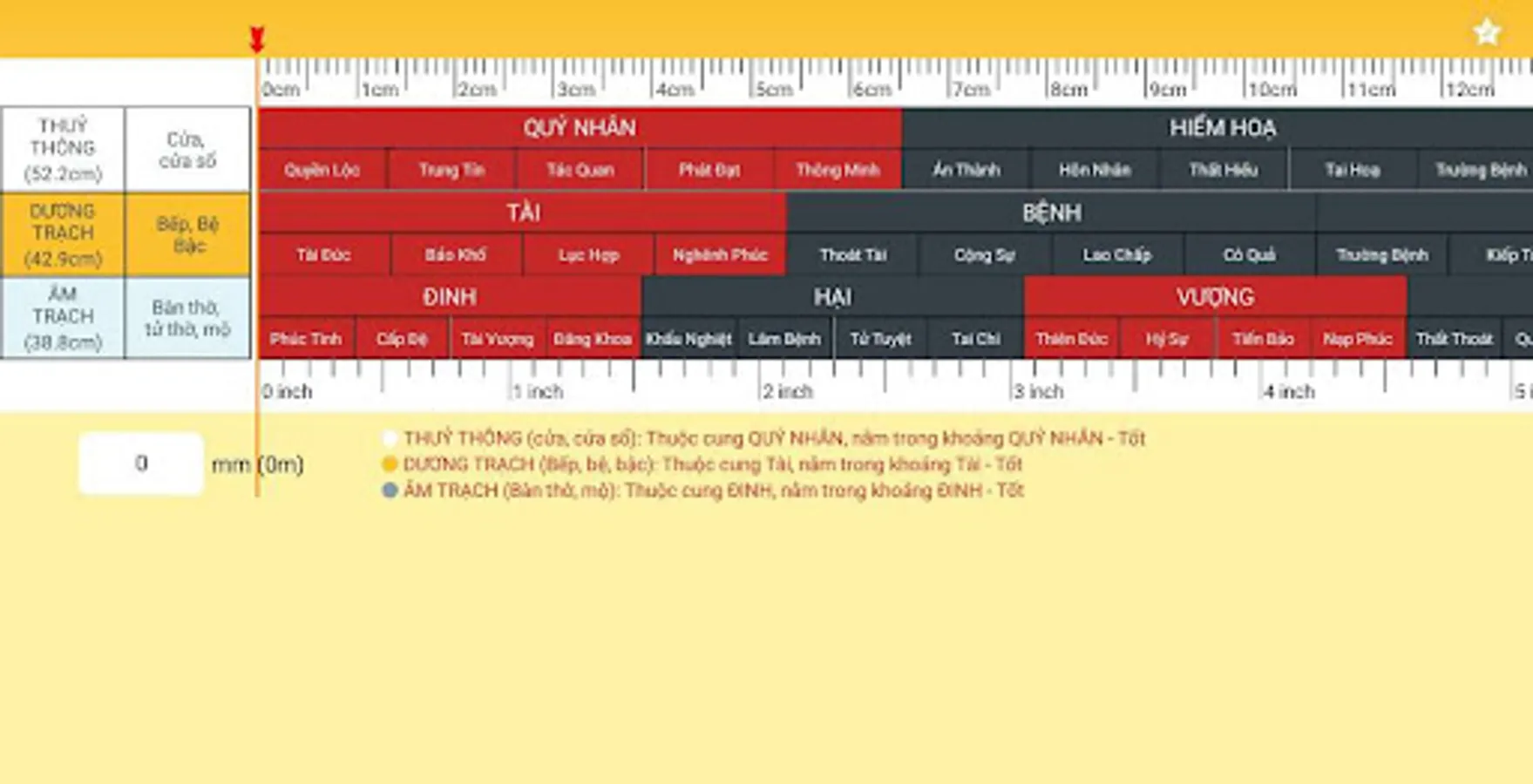 The Lu Ban ruler is a ruler used to measure and measure in the construction of Duong Trach (houses) and Am Trach (graves), on the Lu Ban ruler there are common geographical dimensions and arcs to help determine good or bad intervals. bad, helping users know what size is good to use and what size is bad to avoid.