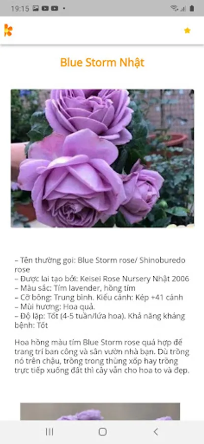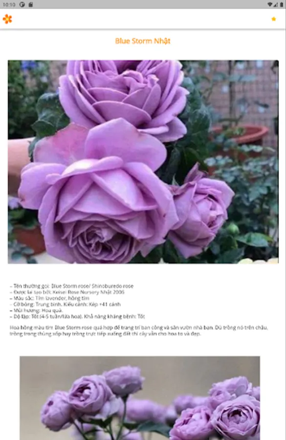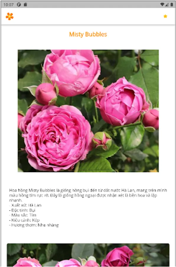 Our application provides information about the name, image, characteristics of the roses. From there, you can choose your favorite variety and buy the right one that you like.