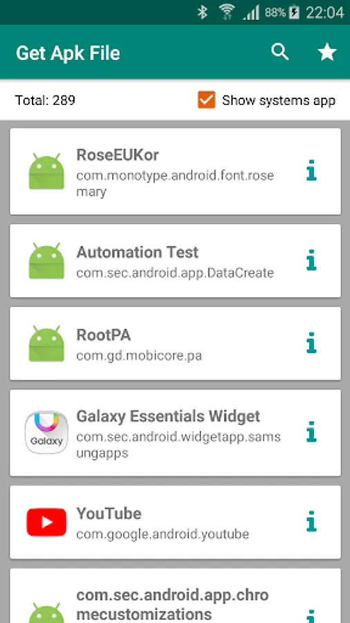 - Simple to get APK file by touch on app which you want to extract