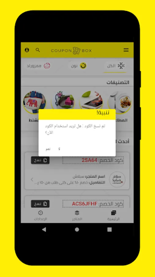 Coupon Box application provides you with exclusive and new coupons from online stores in the Kingdom of Saudi Arabia, the Gulf region and the Republic of Egypt