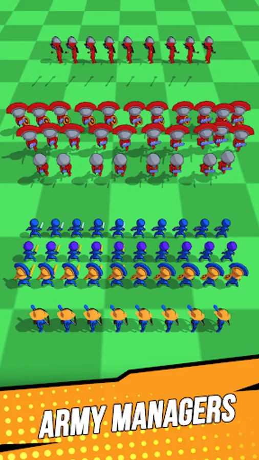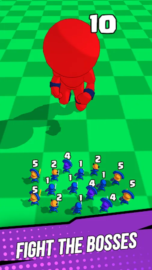 Develop your warriors by combining and fighting enemies. Use your finger to pick the right combination to create a larger and more powerful army.