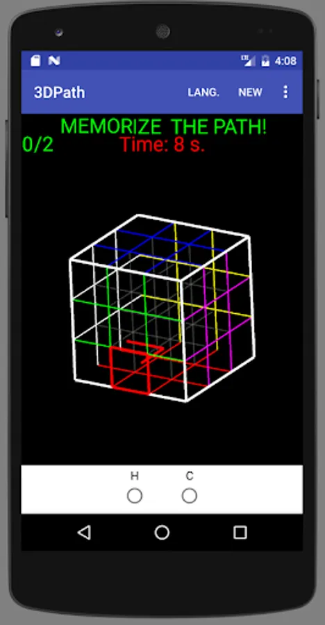 The random path must be memorised in a predefined time, after that time the path will disappear and must be remembered pressing the external faces of the cube.
