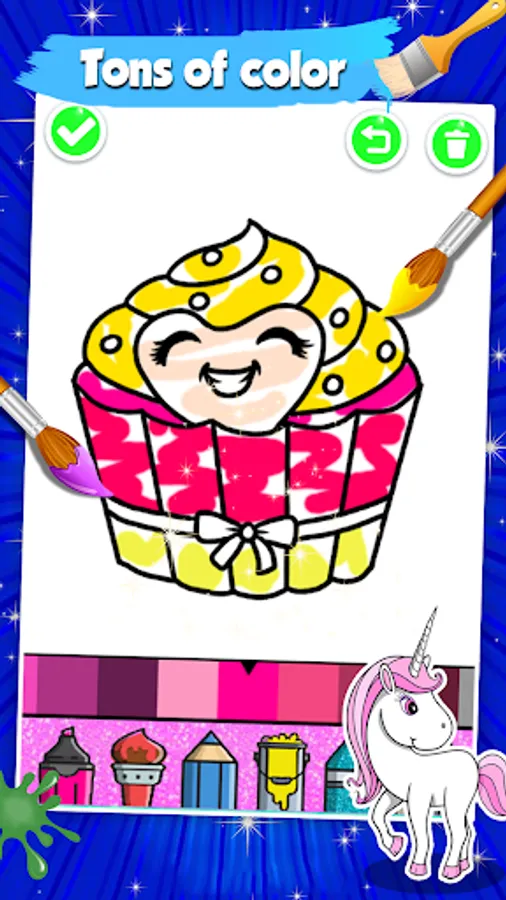 💖 Cupcakes with unicorn coloring book in our coloring game!
