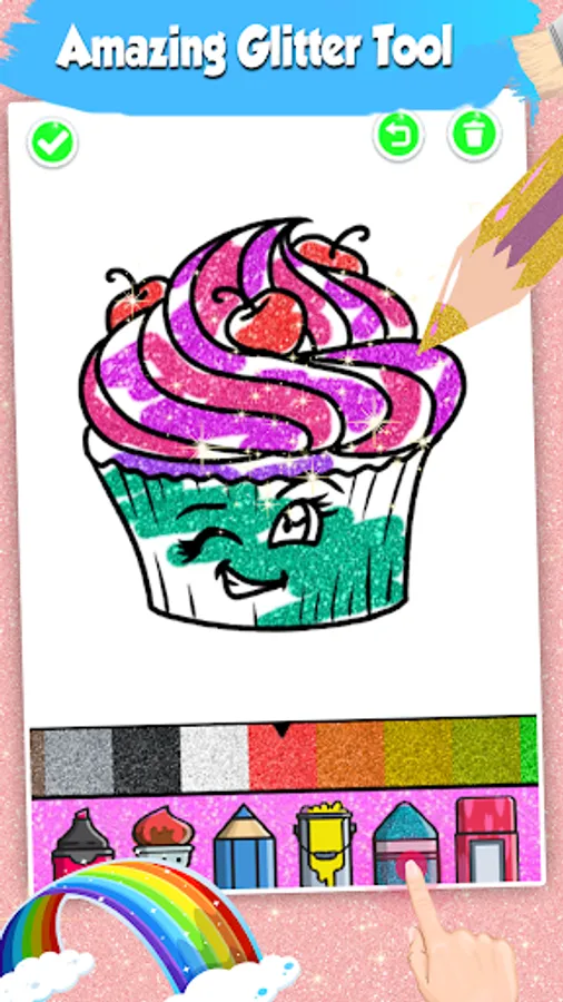 - Glitter Coloring Book With Animation Cupcakes have a beautiful and easy game design!