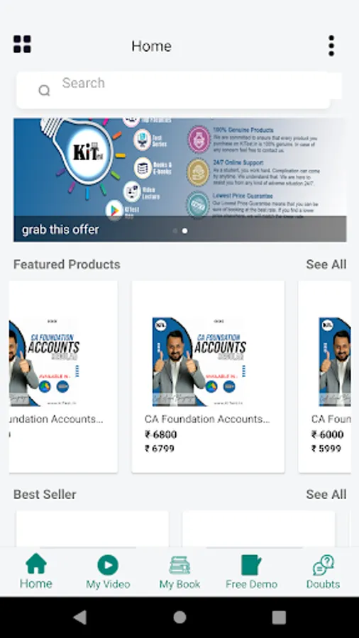 So here we are Presenting The KITest.in app, 1 Stop Destination for Books Related for All courses and Focused for CA, CS & CMA.