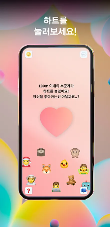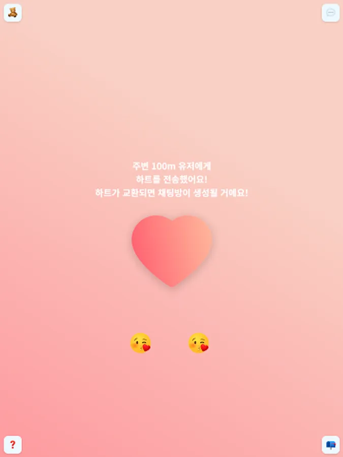 - If you press the heart in the center, the heart will be sent to 100m users around you.