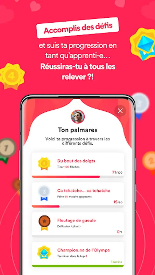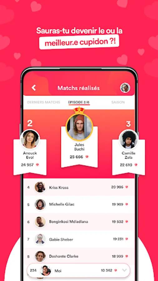 Each arrow unchecked, each pair "matched", each conversation unlocked allows you to win hearts and climb the rankings.