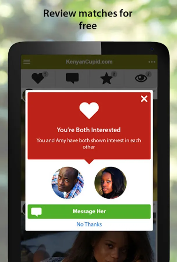 KenyanCupid is a premium dating app helping you connect with Kenyan singles looking for love, dating and serious relationships. If you want to experience a truly authentic Kenyan dating app, KenyanCupid is the dating app for you. Whether you are looking for love locally or internationally we are committed to helping you find your perfect Kenyan man or Kenyan woman. With the KenyanCupid mobile app, you can create a new account and begin writing your Kenyan love story in a matter of minutes. Join now and start browsing profiles!