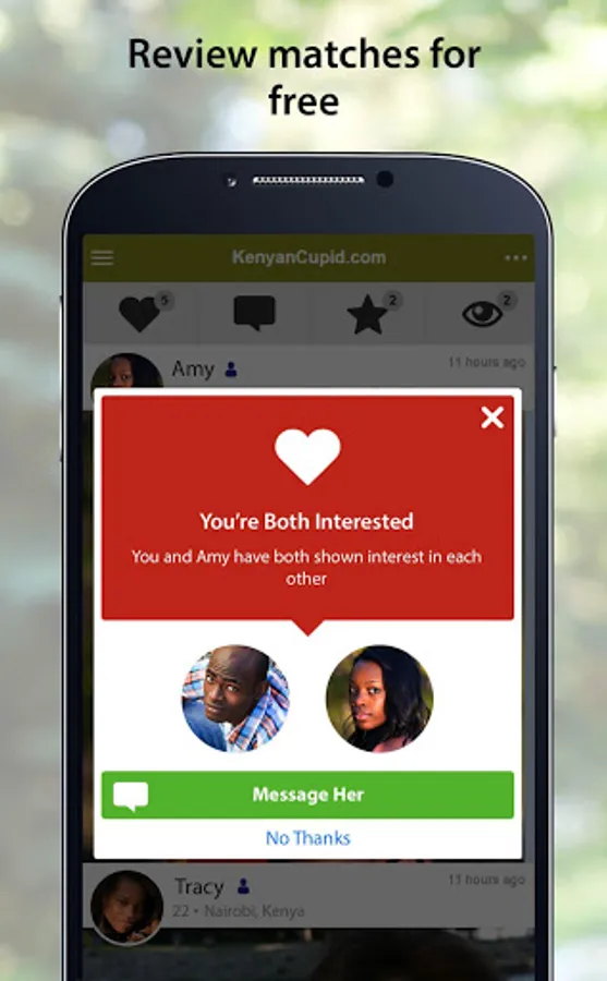 • Sign up or log into your KenyanCupid account anytime, anywhere