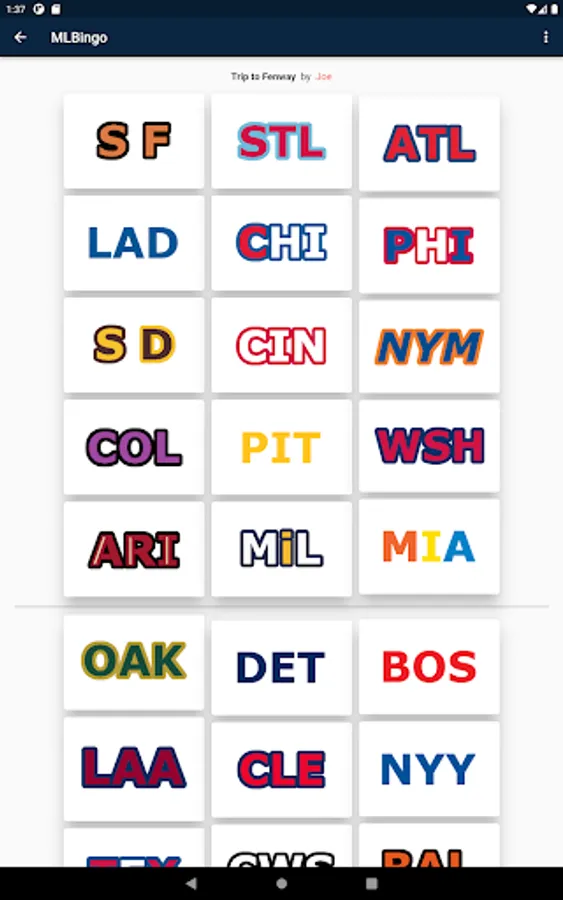 All thirty pro baseball teams are presented to you, similar to a bingo card, and every time you see someone out in the wild wearing that teams merchandise, you click on that team and claim a point.