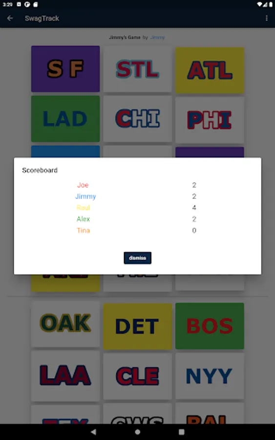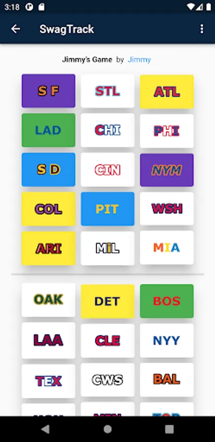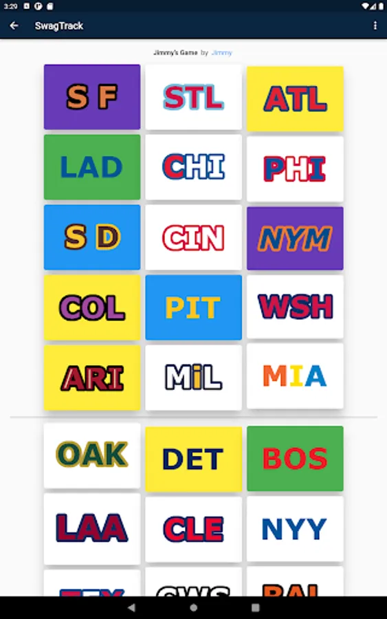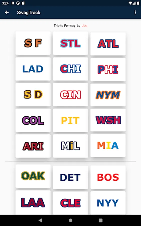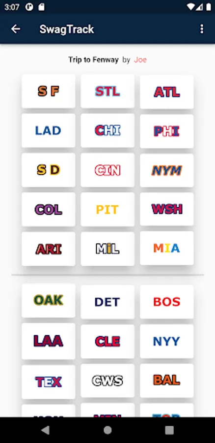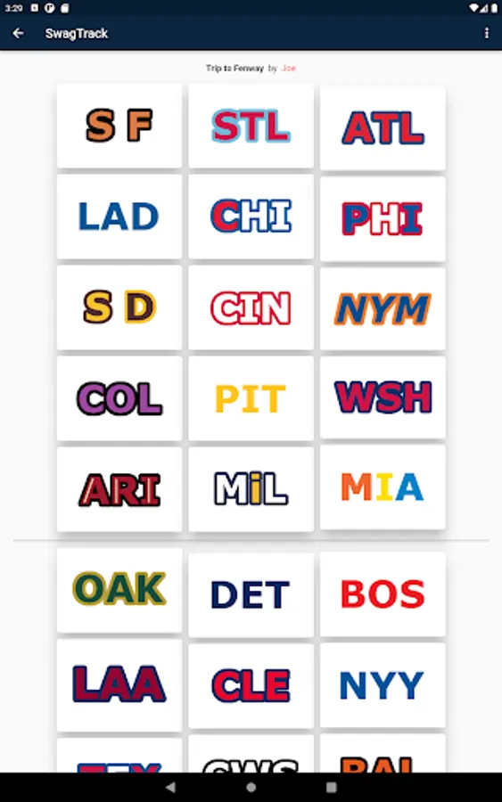 All thirty pro baseball teams are presented to you, similar to a bingo card, and every time you see someone out in the wild wearing that team's merchandise, you click on that team and claim a point!