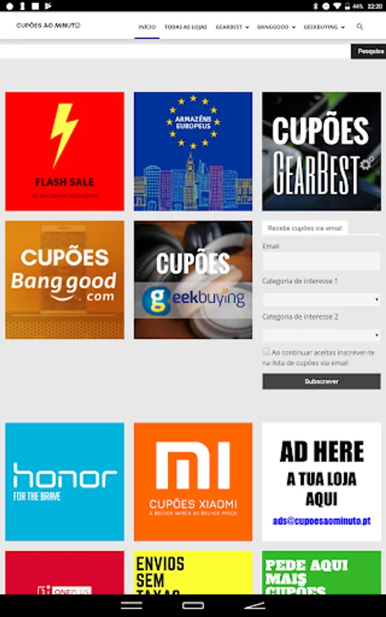 App from the website https://www.cupoesaominuto.pt where you can easily find coupons and promotions from the best known online stores.