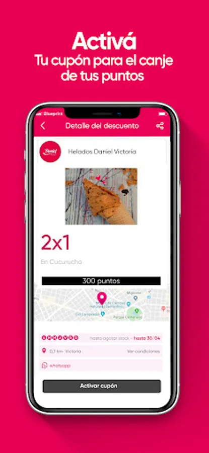 Once registered in the Application you will be able to find the coupons enabled for the exchange indicating the points required for it. After activating the coupon, you can go to the store to make use of the redeemed benefit.