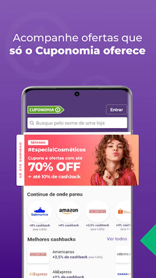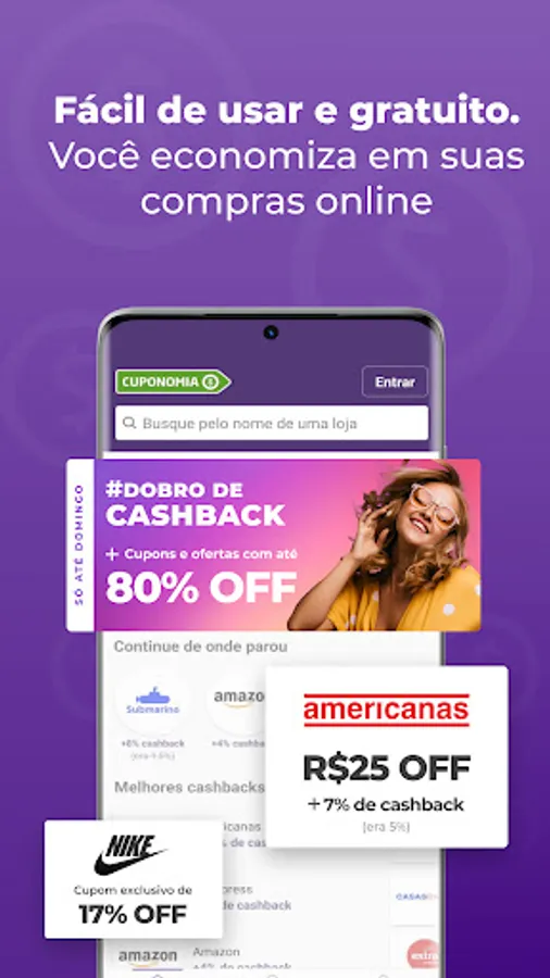 And just like the more than 5 million users of Cuponomia, you can also save in more than 2000 partner stores such as Amazon, AliExpress, Natura, Shein, Shopee, Mercado Livre, Casas Bahia, Magalu, Americanas, O Boticário, Netshoes and many others.