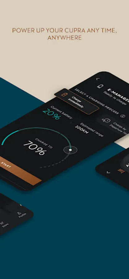 • Start & Stop Charging: Immediately charge your CUPRA Born to the exact percentage that you pre-set.