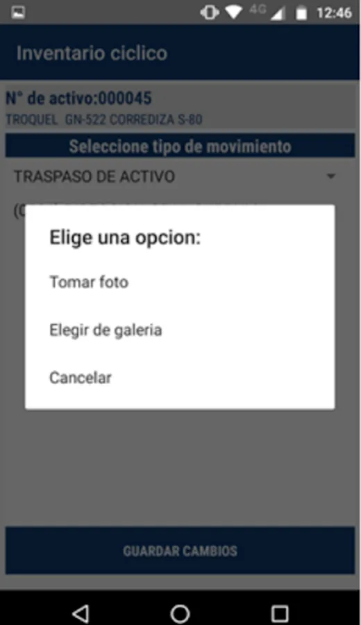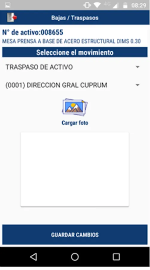 For assets to be Low or transfer to load an image to serve as evidence. The image can be loaded from gallery phone or by capturing photograph.