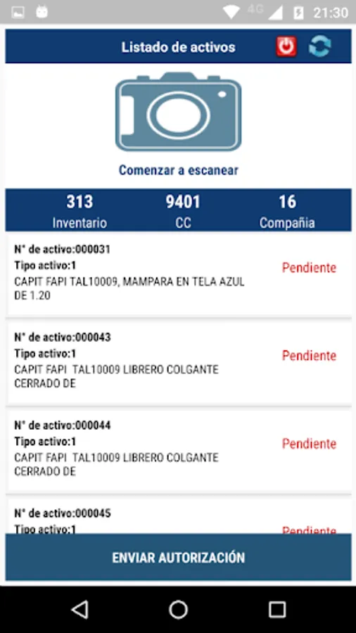 - Once finished reading all assets, you can terminate the inventory and send it to authorize.