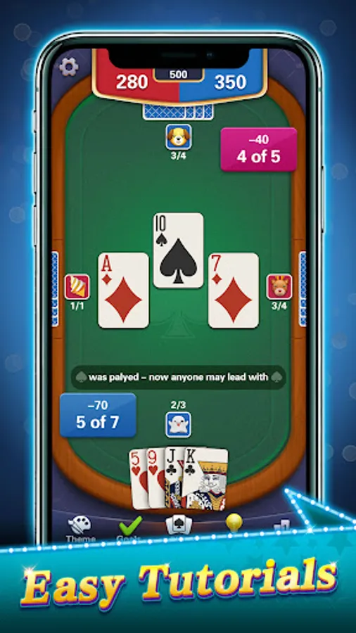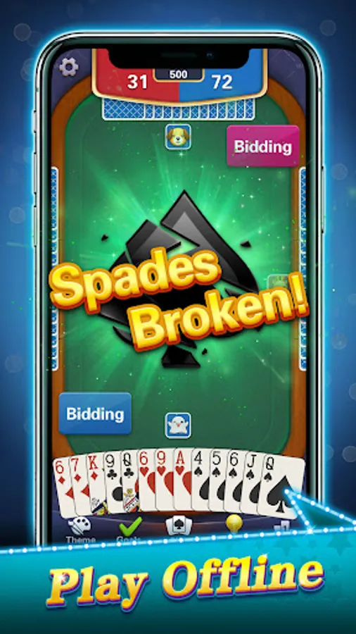 This is a classic game of spades, but in a new look on Google Play, giving you new goals! If you like card games like Hearts, Rummy, Euchre or Pinoche, then you will love the game of spades. We also include clear tutorials to help you learn the game of spades at your own pace! Relax and train your brain for free, or play online/offline multiplayer with friends in the classic game of spades! You can also use our Spades Classic - Card Games as your spades training master to help you gain an edge over your friends in spades game.