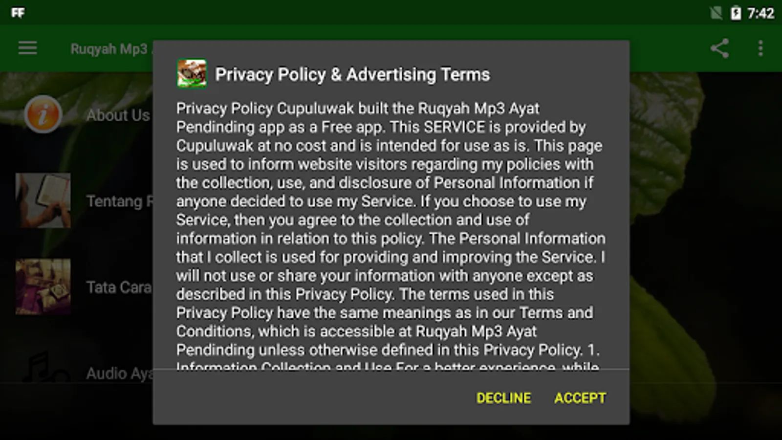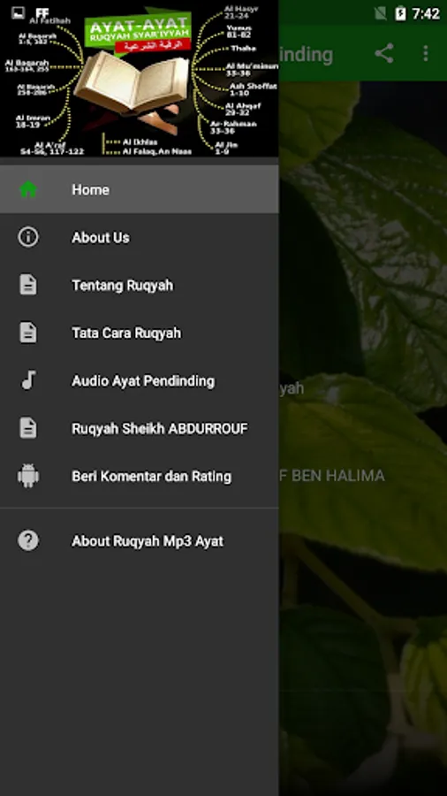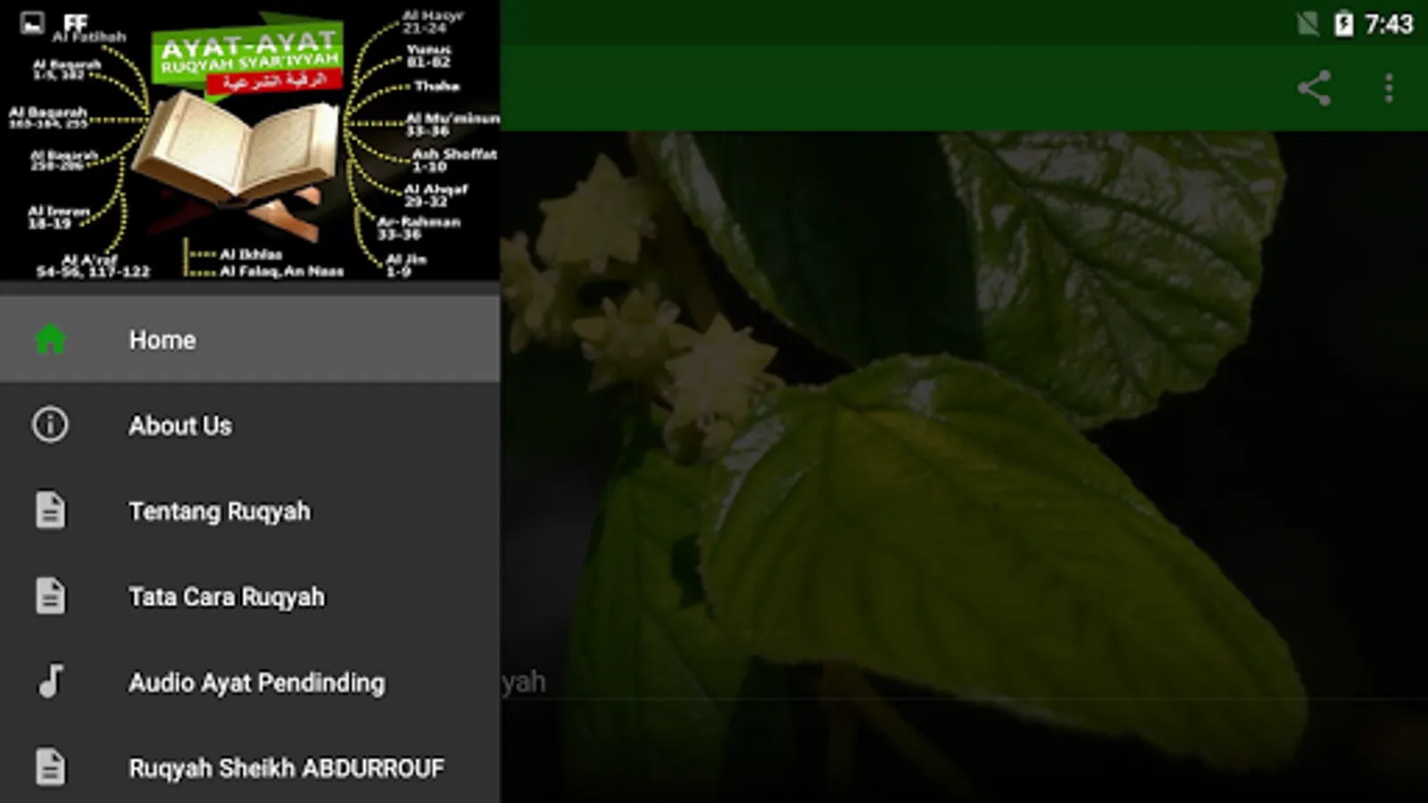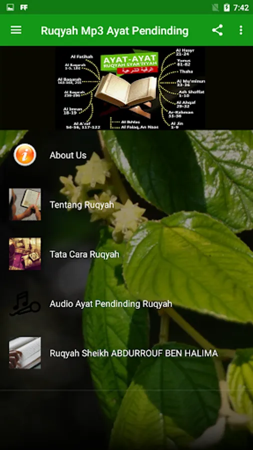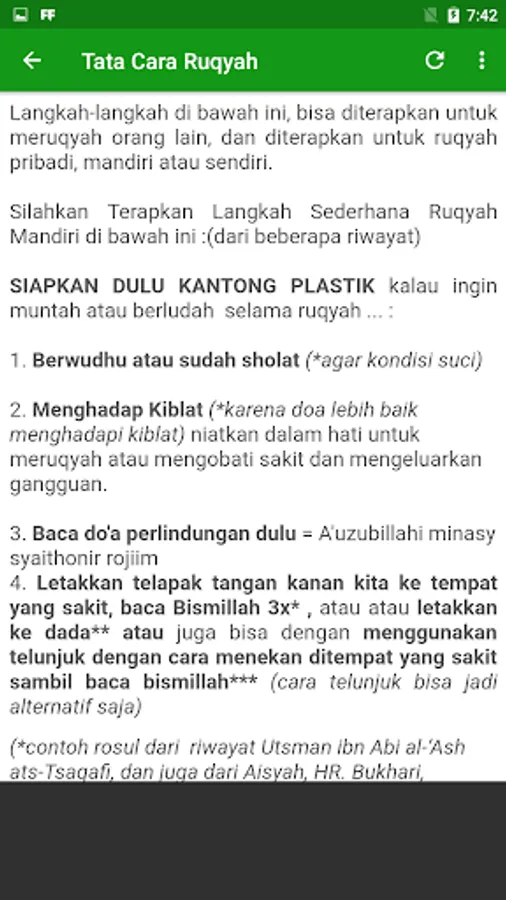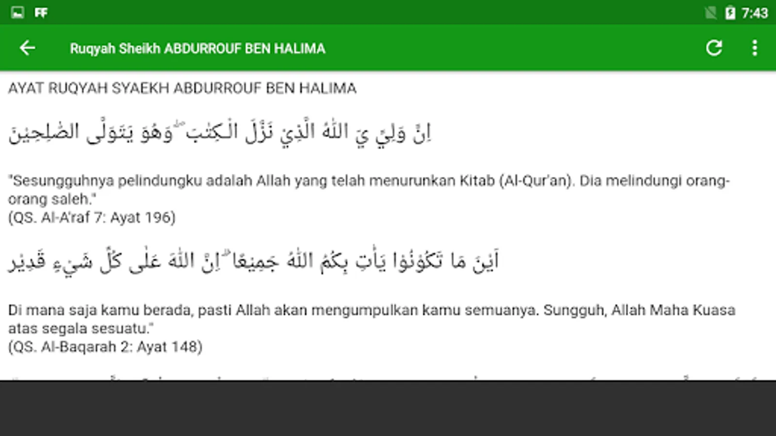 This application contains information about a collection of verses ruqyah and syifa pendinding and rumi for self and family. We take refuge from the temptations of Satan and jinn inside our homes.