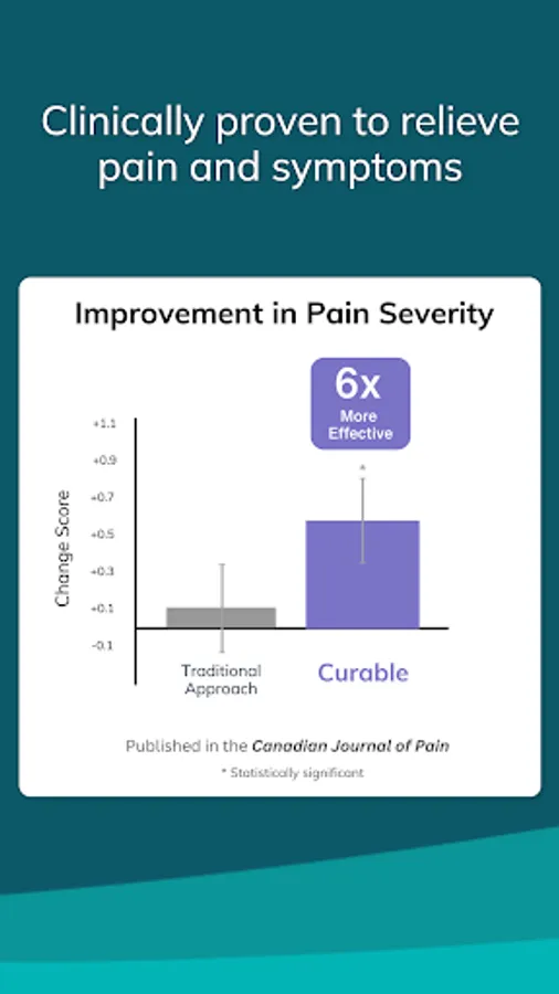 Curable is the #1 app for chronic pain relief and is clinically proven to reduce symptoms in people with long-term conditions (1-3).