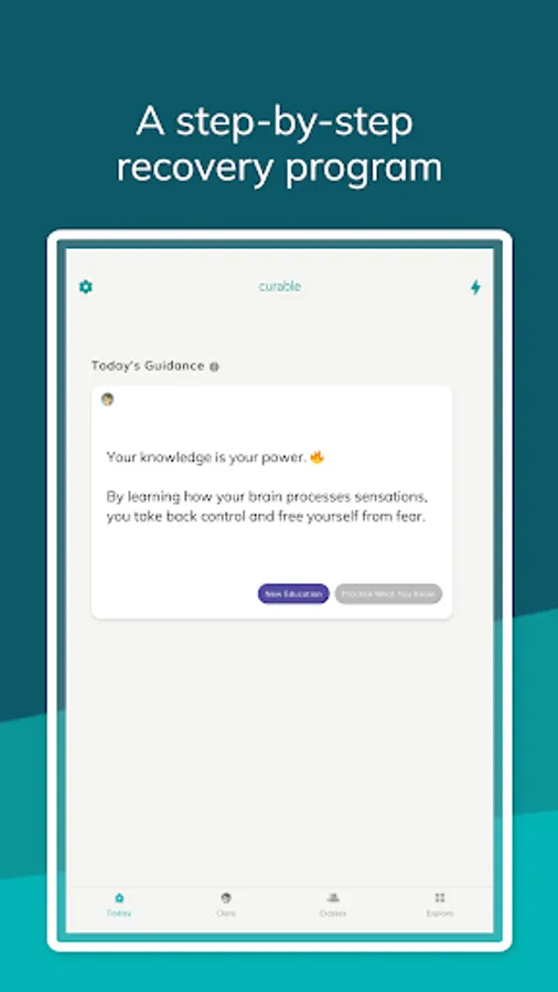 Breakthrough neuroscience shows that up to 90% of chronic pain is generated in the brain, not from lasting injury (4-5). That doesn’t mean the pain isn’t real — it means there’s a powerful path to relief. Curable helps you treat pain at its true source with evidence-based tools that support recovery.