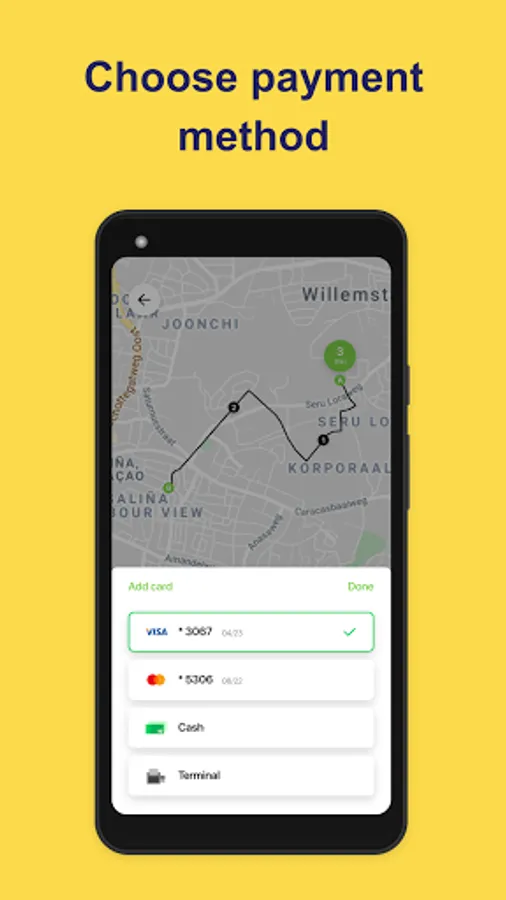 - Choose service. In case you book taxi trips or order food delivery from restaurants or supermarkets, indicate your current pickup and desired destination in Willemstad or anywhere on Curaçao island.