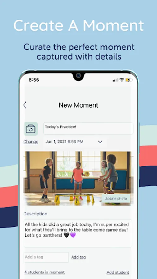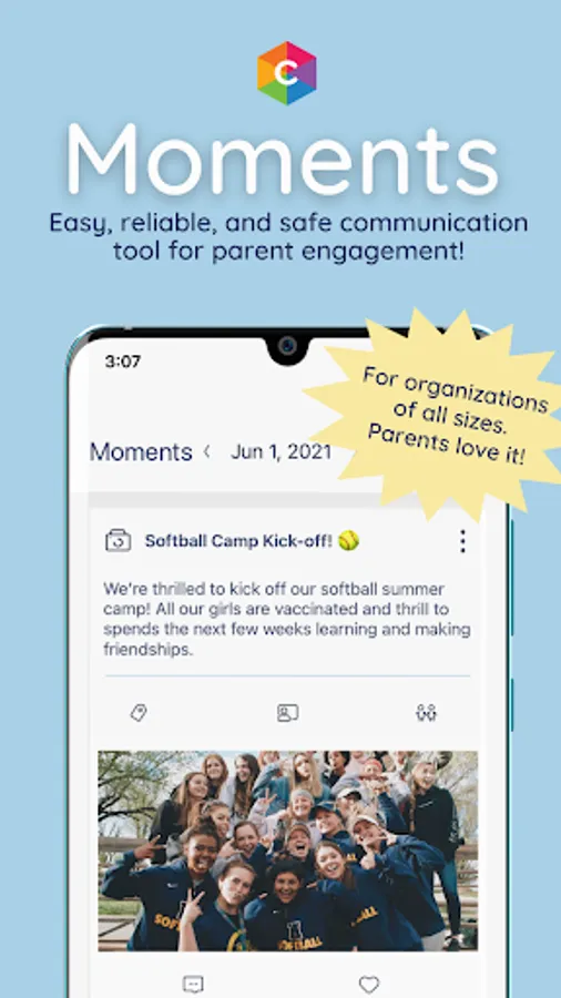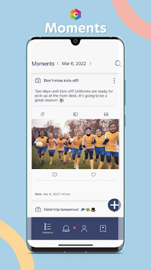 Use Moments to send alerts, photos, videos, and updates to your participants in a simple and secure way.